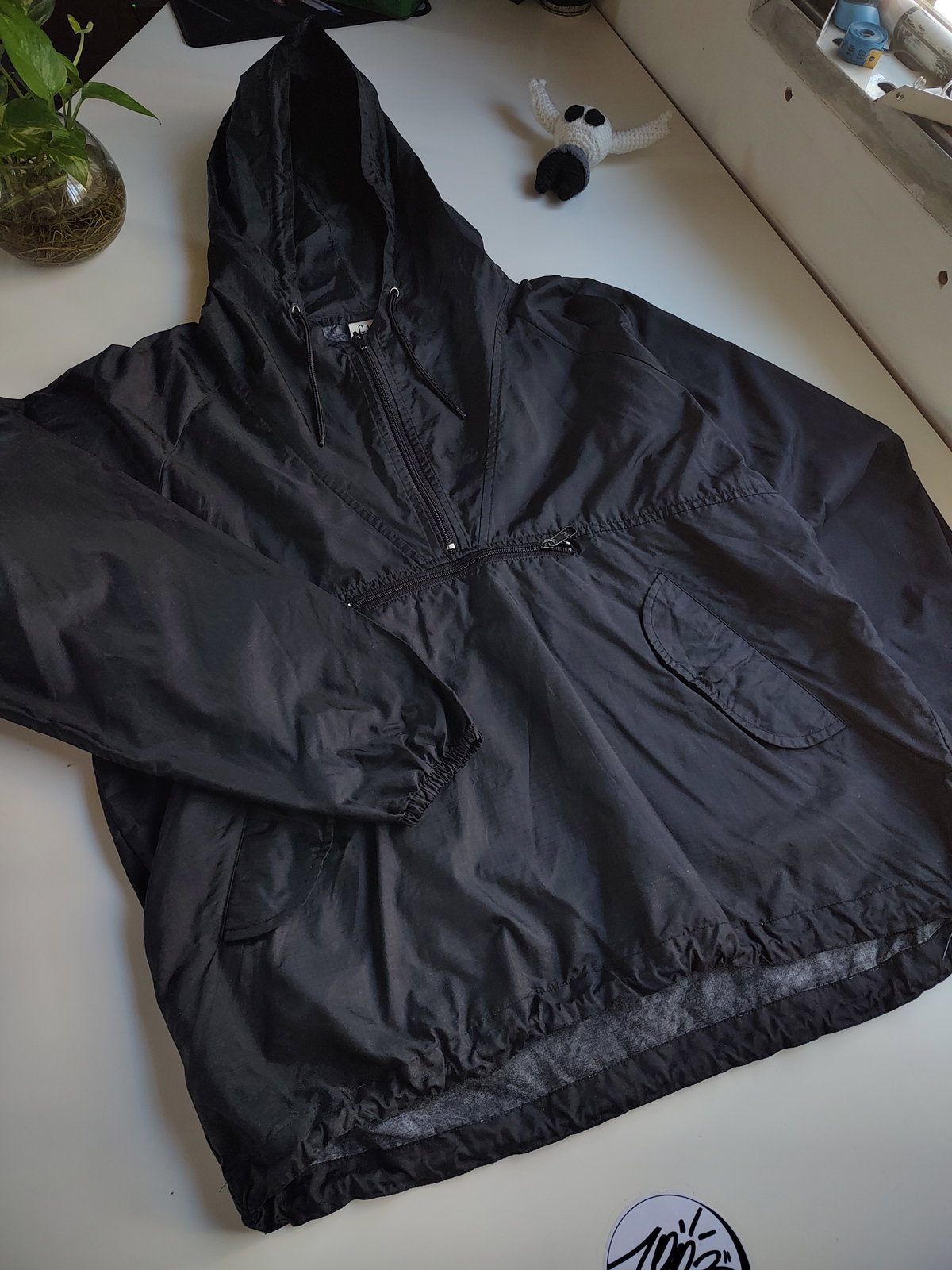 Talle SMedidas: 65 cm Largo↕️ Ancho 66 cm ↔️Manga 60 cm↘️Tela Rompe vientosCapucha ajustableCon bolsillos / bolsillo canguroPuñosy cintura elastizadosPackable