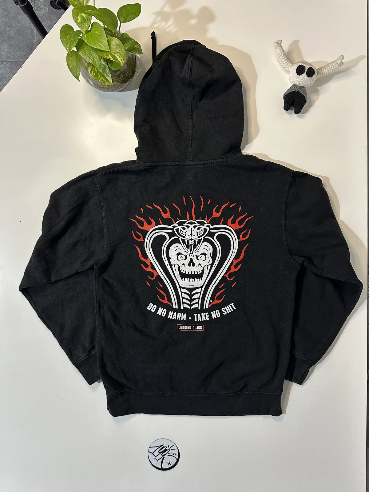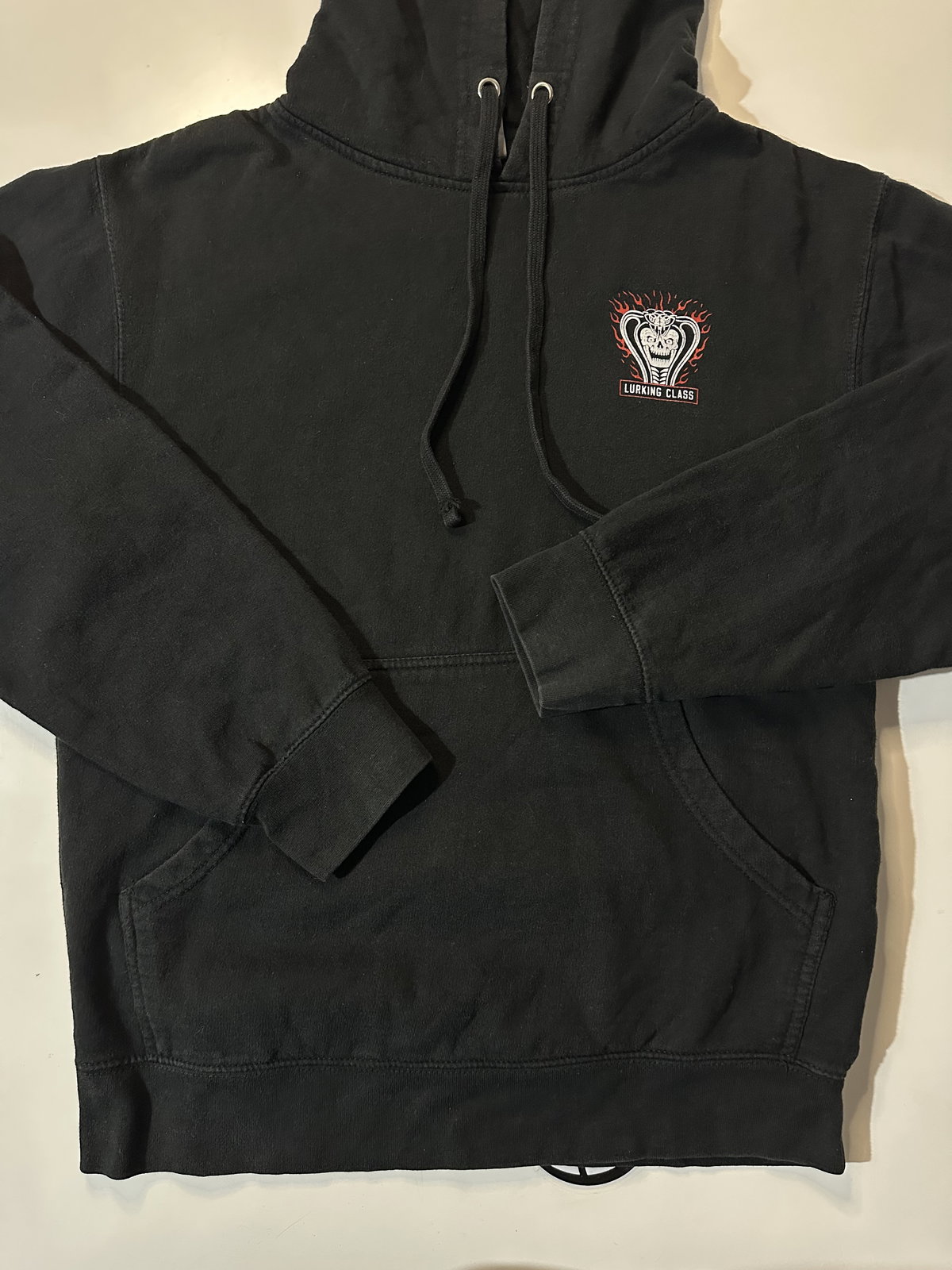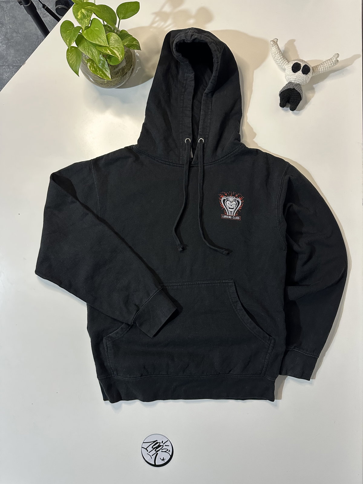 Talle SMedidas: 60 cm Largo↕️ Ancho 45 cm ↔️Manga 55 cm↘️Tela Algodóncon capuchapuños y cintura elastizadosbolsillos canguroBig Logo detras